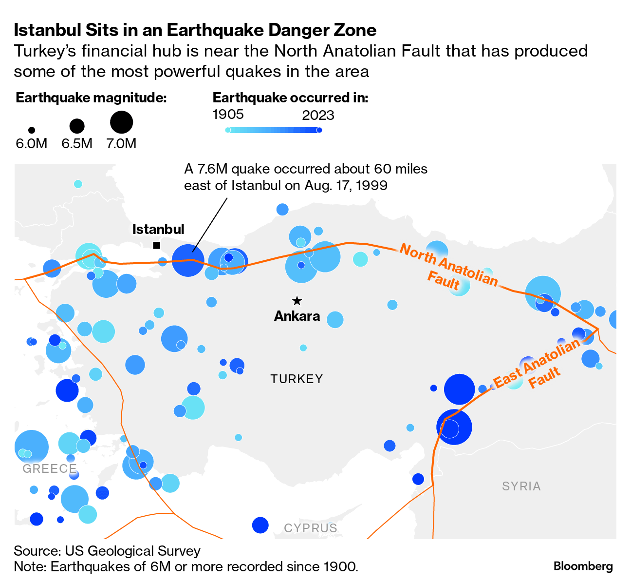 Earthquakes are unpredictable but also inevitable, and experts say Istanbul might be due one. After the devastation last year in the southeast of the country and criticism the authorities weren’t prepared, banks are now getting ahead on contingency planning. That includes establishing teams in shadow offices in the capital Ankara to ensure continuity should disaster strike.