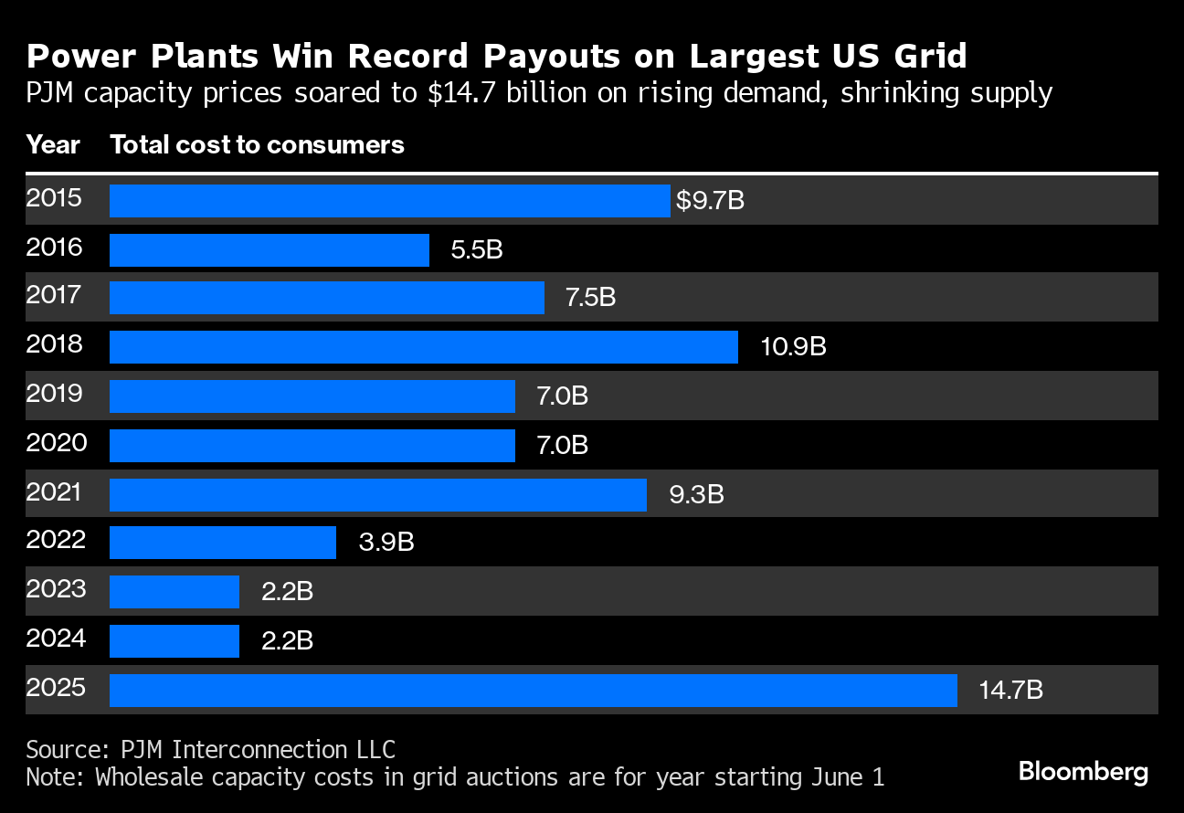(Bloomberg) -- Power plants on the largest US electric grid just won record payouts in an auction intended to boost the system’s reliability. But experts say it still won’t be enough to spur big investment in projects needed to meet growing demand.