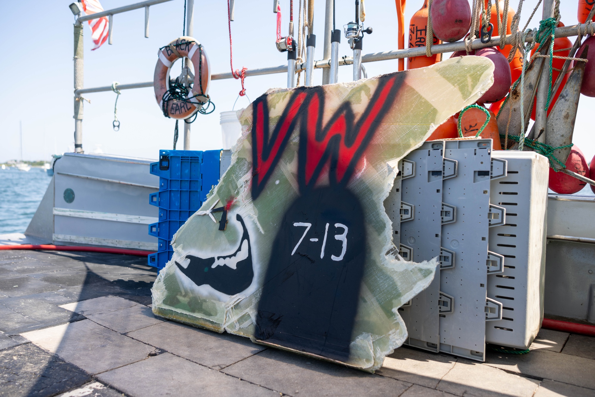For those already opposed to the project, the assurances are cold comfort. Danny Pronk, a lobsterman and captain of the Black Earl, brought a chunk of the broken Vineyard blade to a road near the airport recently to protest the arrival of Vice President Kamala Harris’s husband, Doug Emhoff, on the island for a fundraiser. Pronk is planning a flotilla demonstration at the site of the broken turbine.