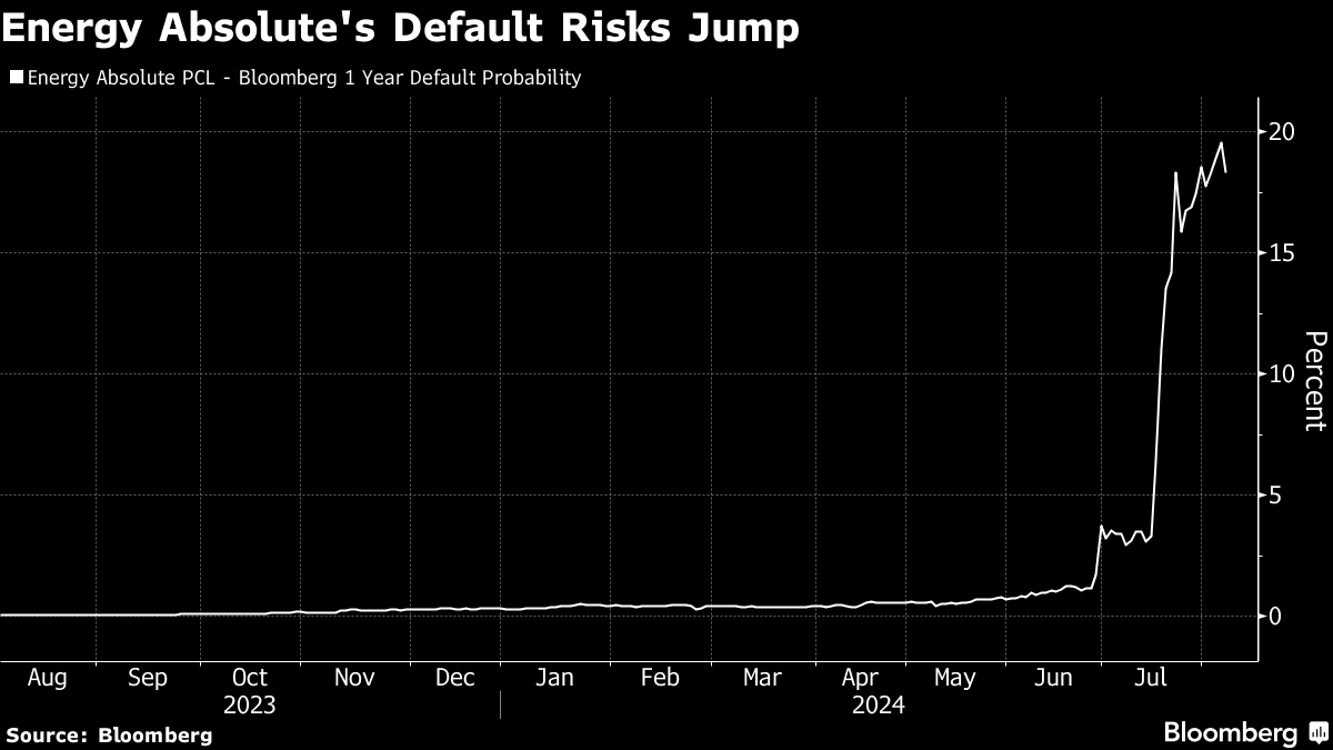 Energy Absolute, which does everything from power generation to assembling trains, ferries and buses, is facing a cash crunch after a regulator’s accusation of fraud against key officials triggered a credit rating downgrade and derailed a bond sale. Its market value has plunged 90% this year and the local mutual fund industry group banned new investments in its securities, creating a major hurdle for raising capital.