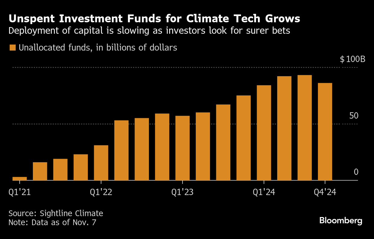 Climate Tech Funds See Cash Pile Rise to $86 Billion as Investing Slows