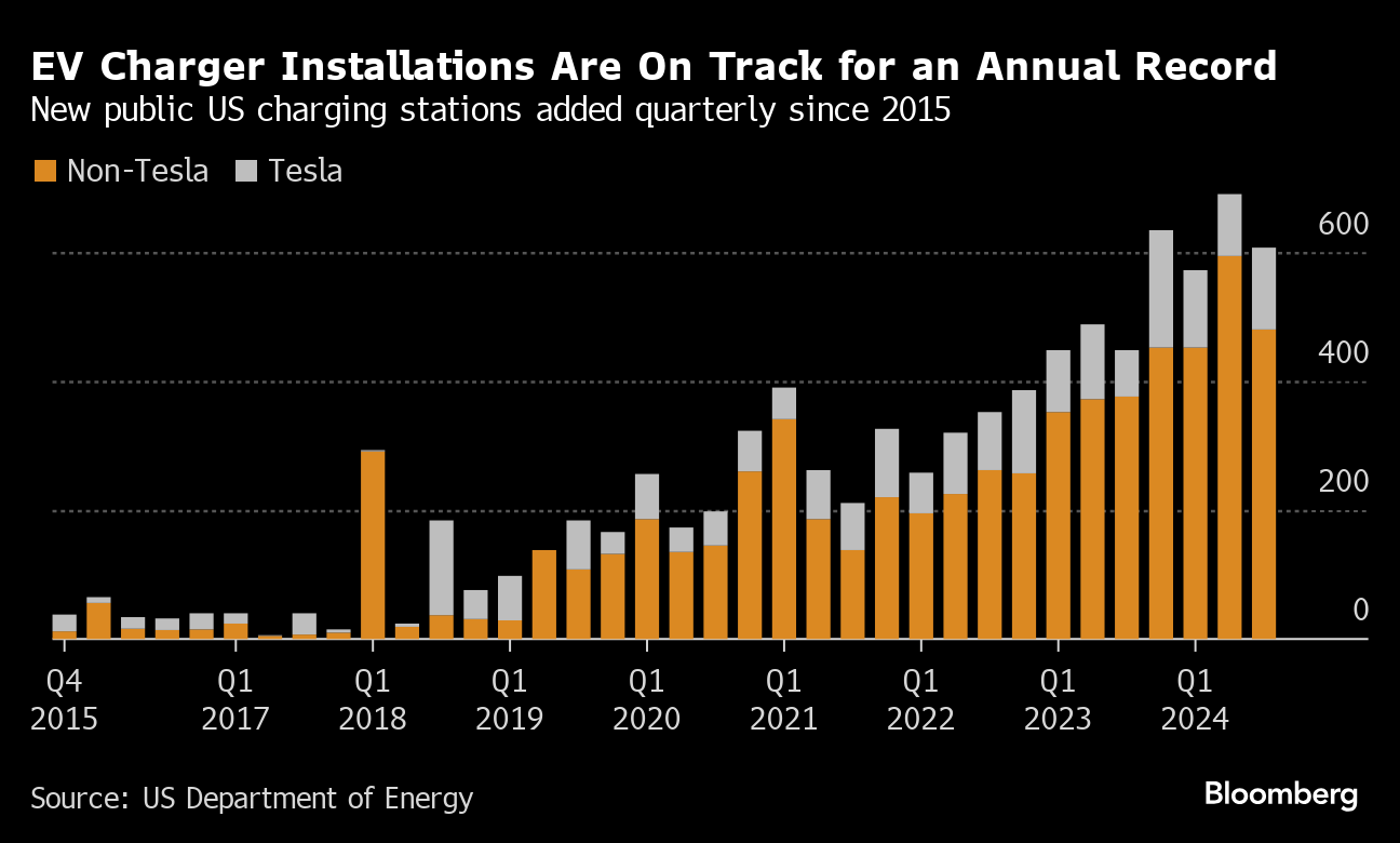 The US Eliminated Electron DesertsElectric vehicle range anxiety was put to rest for many drivers in the US in 2024. In the first nine months of the year, the number of fast-charging stations in the country surged by 35%. There are now about 9,000 public sites in the US with much of the infrastructure built in rural areas.