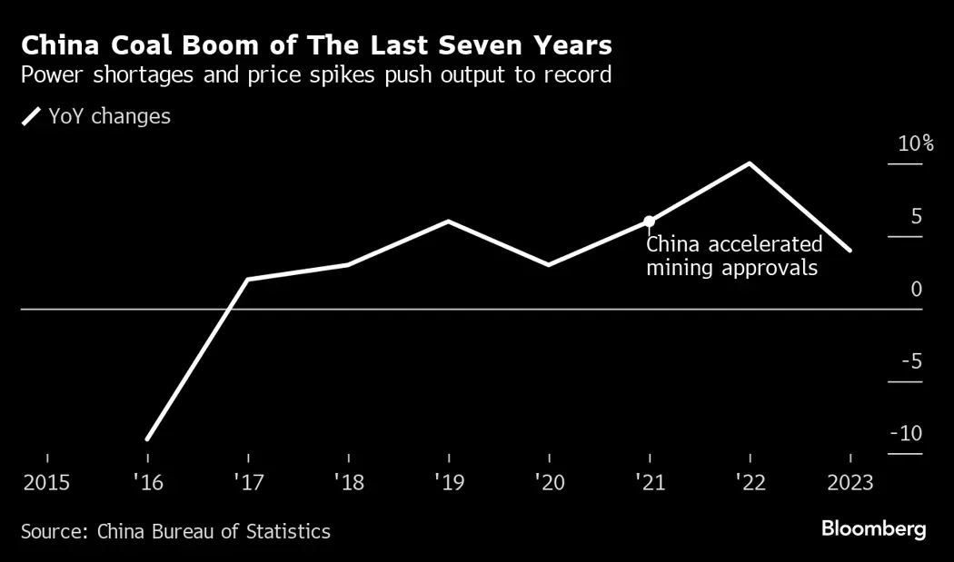 At the same time, China is running up against a deadline to peak coal consumption by 2025 to meet its climate goals. It means output growth could slow to 1.4% this year, Guosheng Securities Co. said in a note, which would be the weakest since 2017.