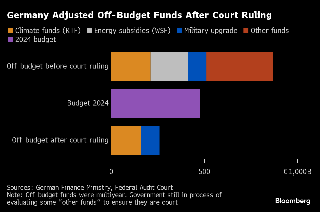 Chancellor Olaf Scholz’s coalition was forced to overhaul its finances after a top court last year ruled that it was unconstitutional to transfer more than €60 billion earmarked to tackle the Covid-19 pandemic into the climate fund. While the 2024 budget has finally passed, that only came after the government readopted a debt brake, raising concerns about the funding available to achieve Germany’s target of slashing carbon emissions by 65% by 2030.