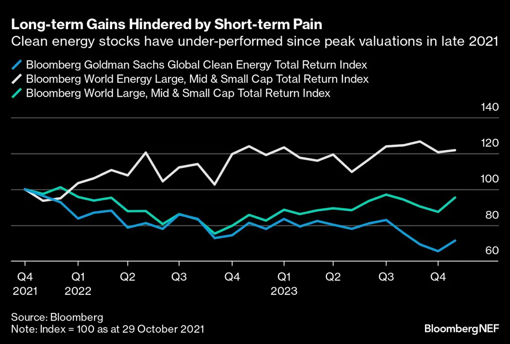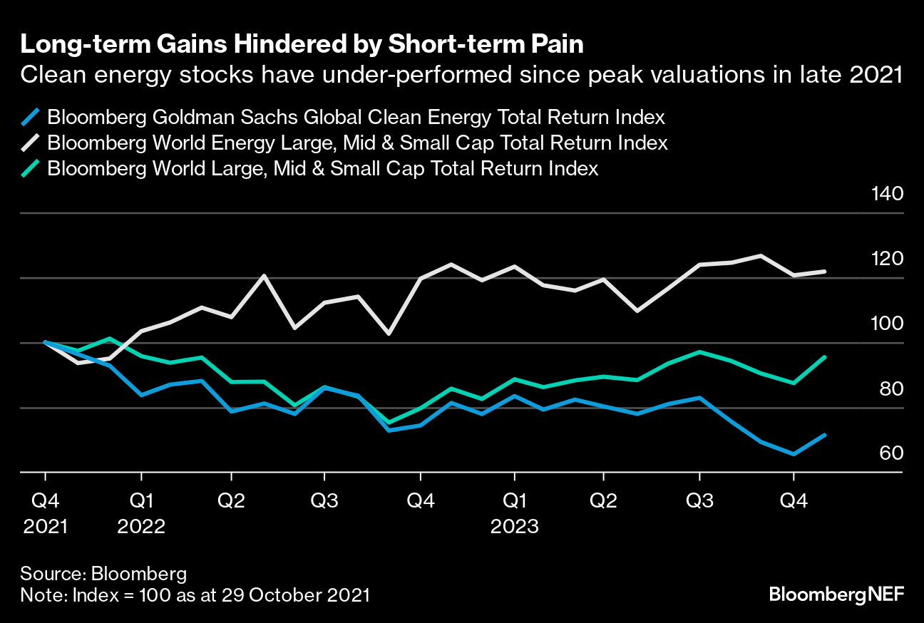 Much of that underperformance was caused by higher interest rates and supply-chain bottlenecks, with capital-intensive green projects such as wind parks often struggling in the face of the macro forces that have dominated the post-pandemic world.