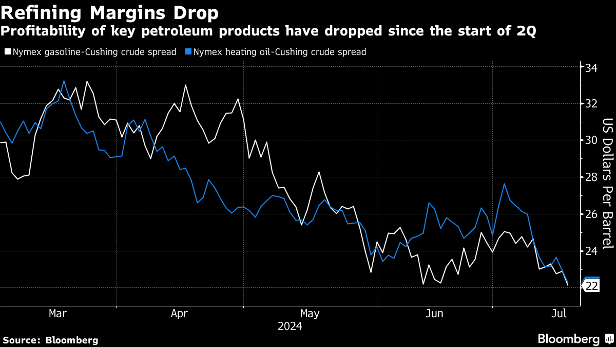 “Our expectation is refining margins continue to weaken moving forward,” Jason Gabelman, a New York-based analyst at TD Cowen said in an interview.