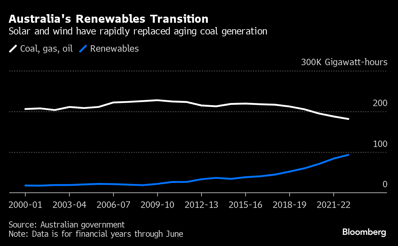 Australia’s world-beating uptake of solar has helped cause increased volatility and made the nation a test case for the global energy transition as aging coal plants struggle to compete.