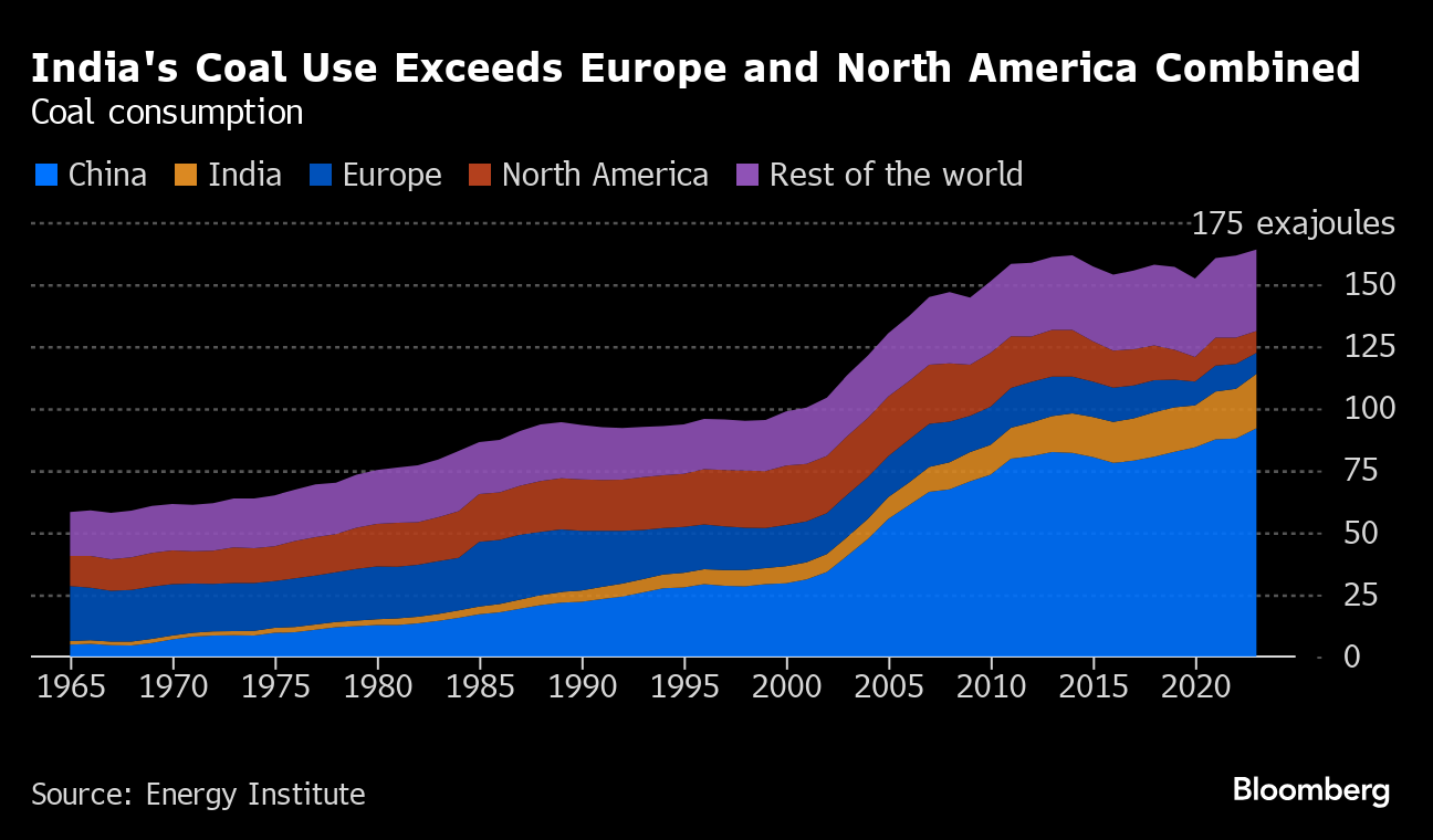 Coal use also increased in India last year amid rapid economic growth. For the first time, the country consumed more of the polluting fuel than Europe and North America combined, according to the statistical review.