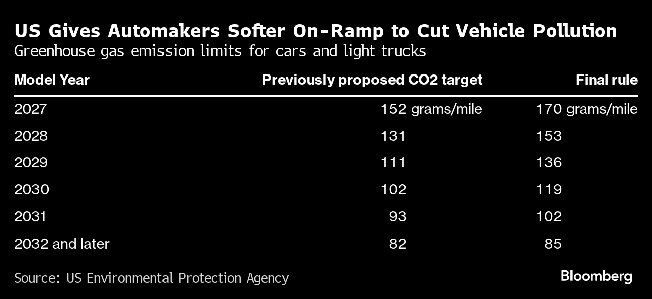 (Bloomberg) -- The Biden administration moved Wednesday to throttle pollution from the nation’s cars and light trucks, imposing tailpipe emission limits so stringent they will compel automakers to rapidly boost sales of battery-electric and plug-in hybrid models.