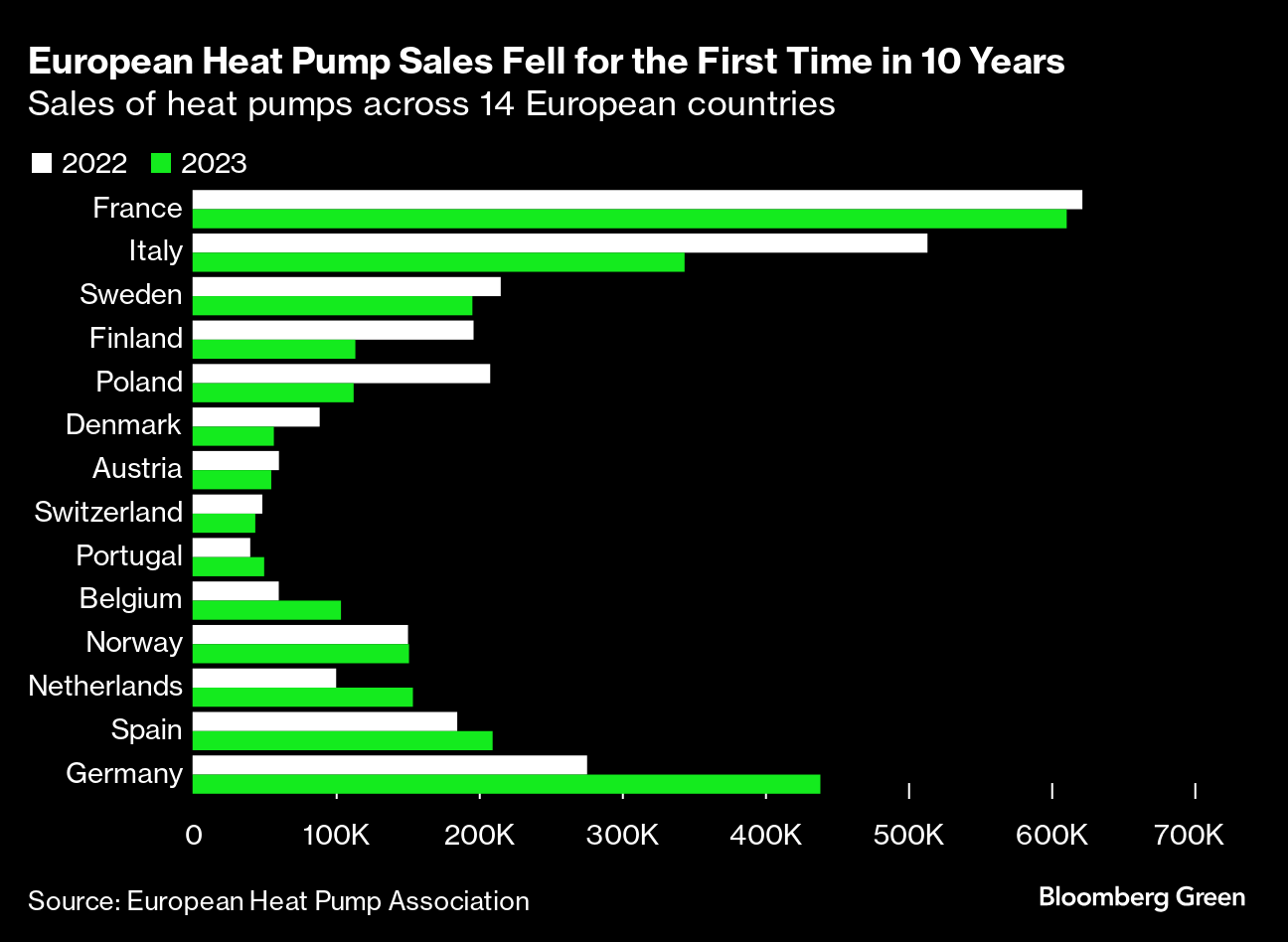 That enemy is currently everywhere. Buildings produce about a third of carbon emissions in Europe, where the boiler is dominant in many countries. In the UK, roughly 80% of households still use gas for heating. The push to decarbonize home heating, meanwhile, has become increasingly contentious. In February, the heat pump industry recorded its first drop in European sales in a decade, a decline it attributed to negative narratives about the technology, delays to European green policies and concerns about inflation.
