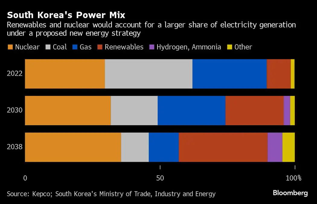 The world’s eighth-largest emitter can aim to lift the share of renewables in its power mix to almost a third by 2038 from about 9% in 2022, and make nuclear the country’s largest source of electricity generation, a document published Friday showed. Coal and natural gas would decline sharply under the plans.