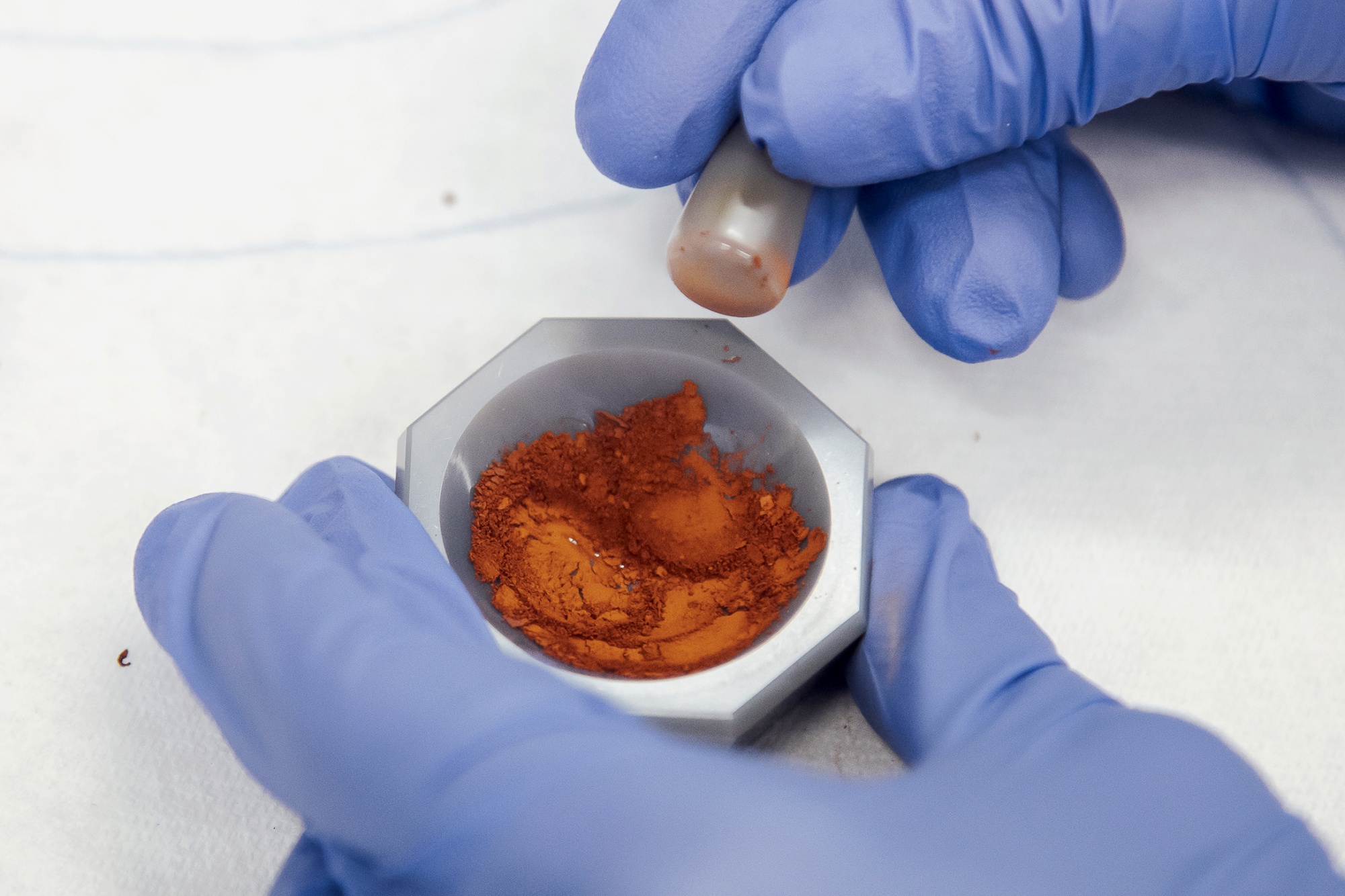 Mineral pigments used for textiles are generally negatively charged, says Christelle Chauffeton, a research scientist at EverDye. The fabric is also negatively charged, so the two have no affinity and the color won’t adhere. That’s why the dyeing process typically relies on additives, binders and high heat.