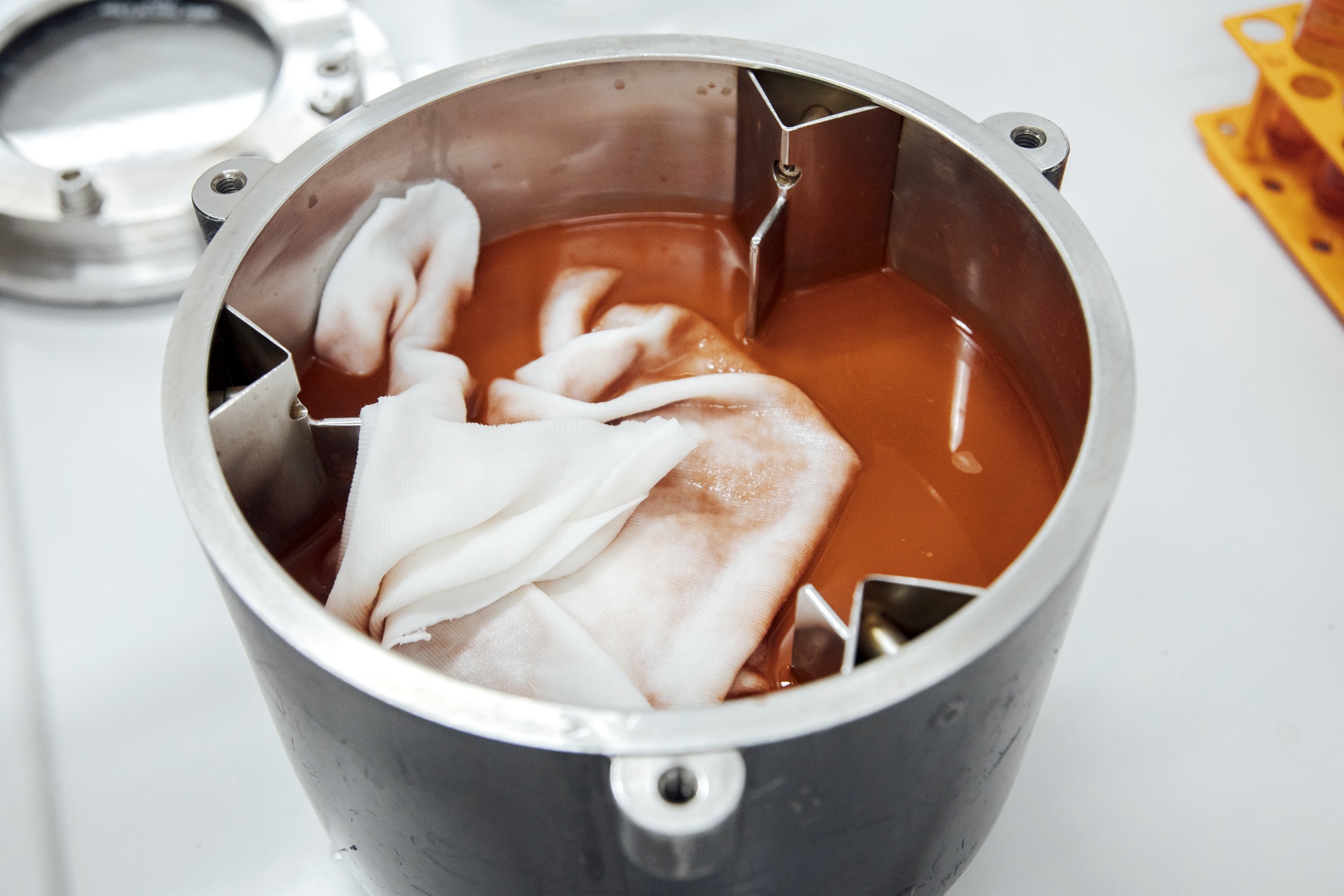 That’s why Circ turned to chemistry instead. Its technology uses water as a solvent, plus pressure, to break down large polyester molecules — polymers — into their building blocks, or monomers, says Peter Majeranowski, the company’s president. This helps separate the two types of fiber. Circ then purifies the polyester monomers and the cotton so they can both be reused in textile production.