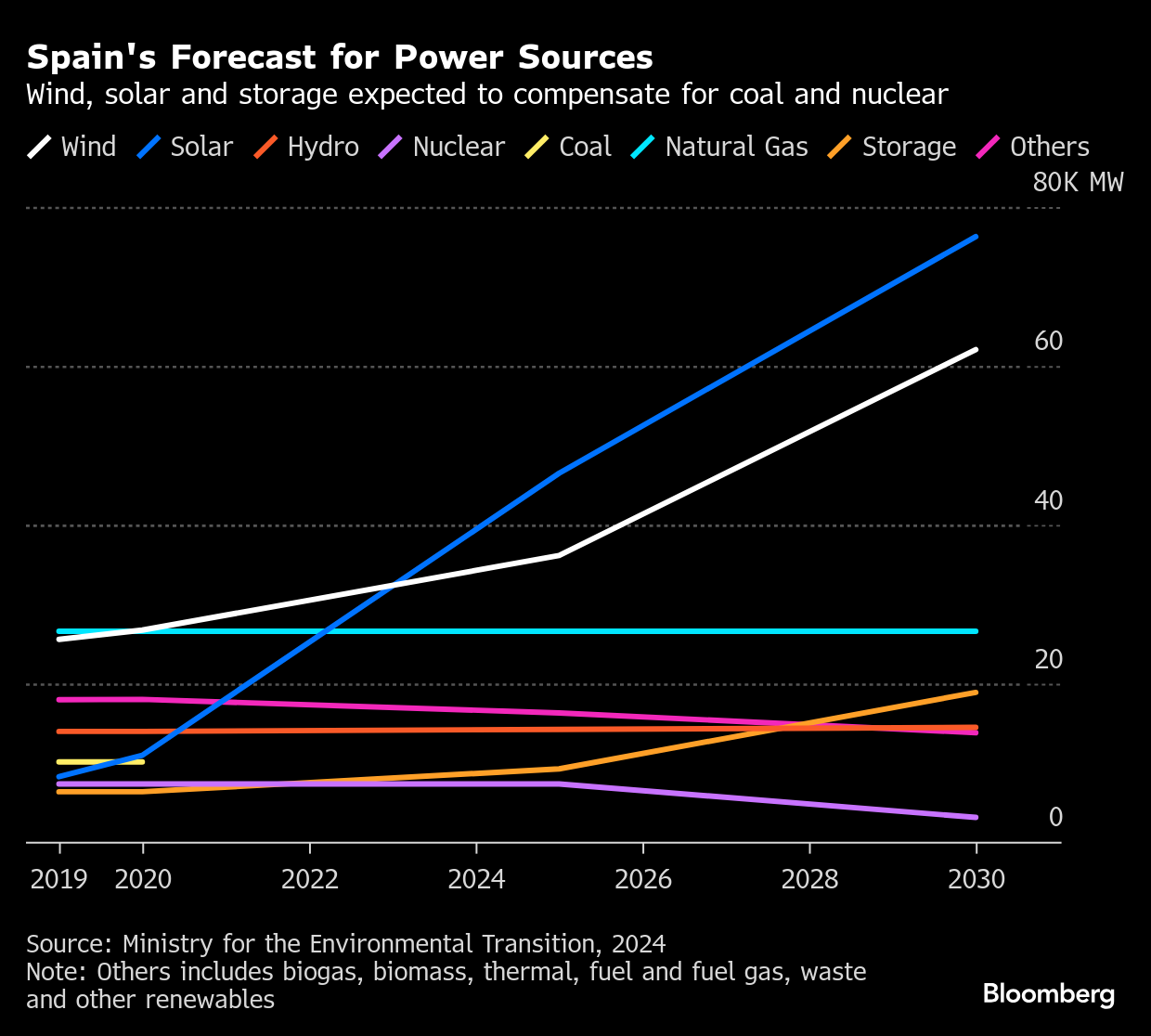 (Bloomberg) -- Spain is ignoring calls to reconsider its nuclear decommissioning plans, betting renewables and battery storage will make up for the upcoming energy shortfall.