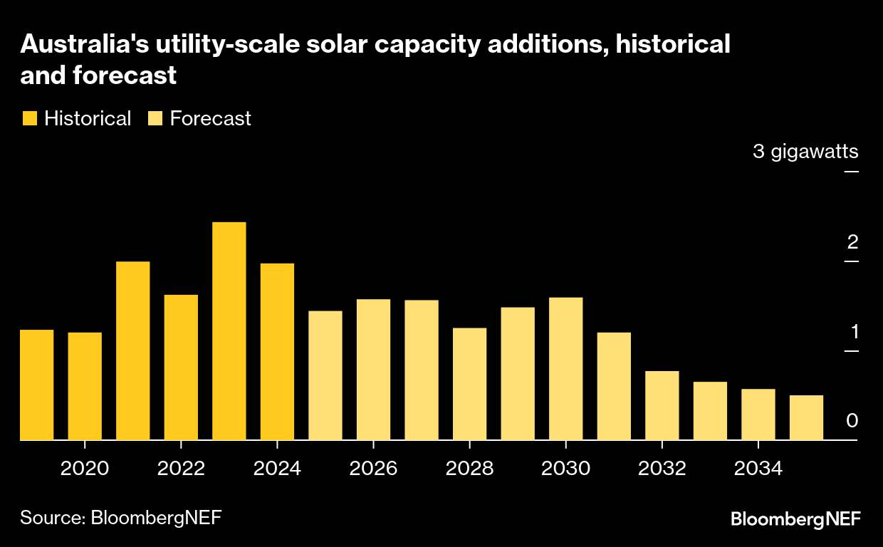 (Bloomberg) -- Australia’s booming utility-scale solar industry may have already peaked, risking the country’s lofty climate goals.