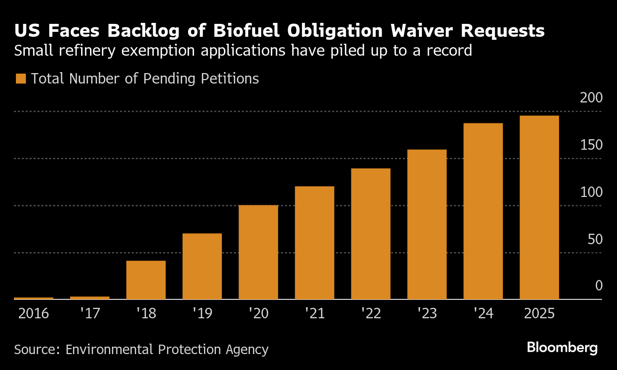 But exemption requests have piled up in recent years as a result of court rulings, political pressure and shifting policies under both the Trump and Biden administrations. The EPA currently has a backlog of 195 exemption applications from companies including Delek US Holdings Inc. going back to 2016.