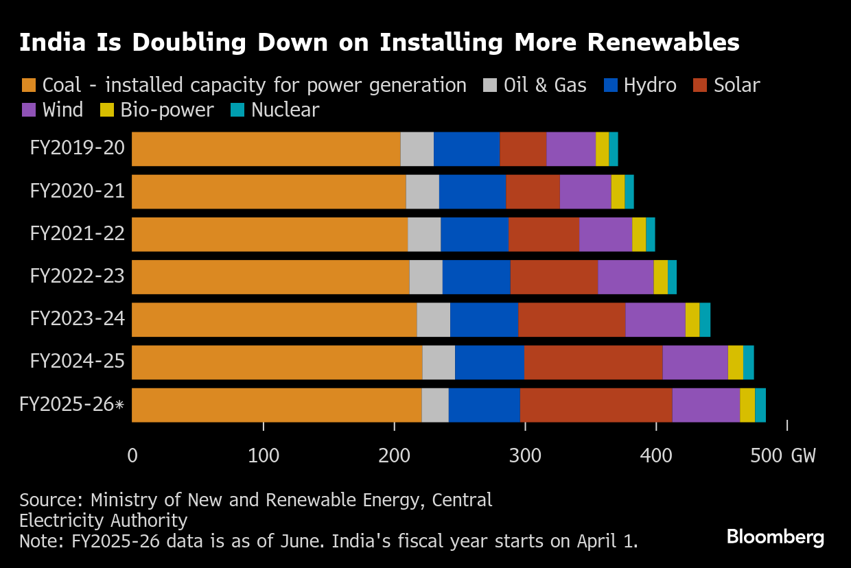 The threat is especially severe in India, where Prime Minister Narendra Modi's plan to more than double renewable energy capacity by 2030 could be undermined by the country’s high susceptibility to wind droughts and reduced solar irradiation. Wind power generation there fell by 0.77 petawatt-hour per decade between 1980 and 2016, according to a 2018 study, as a lower differential between temperatures on land and the Indian Ocean slowed wind flows.