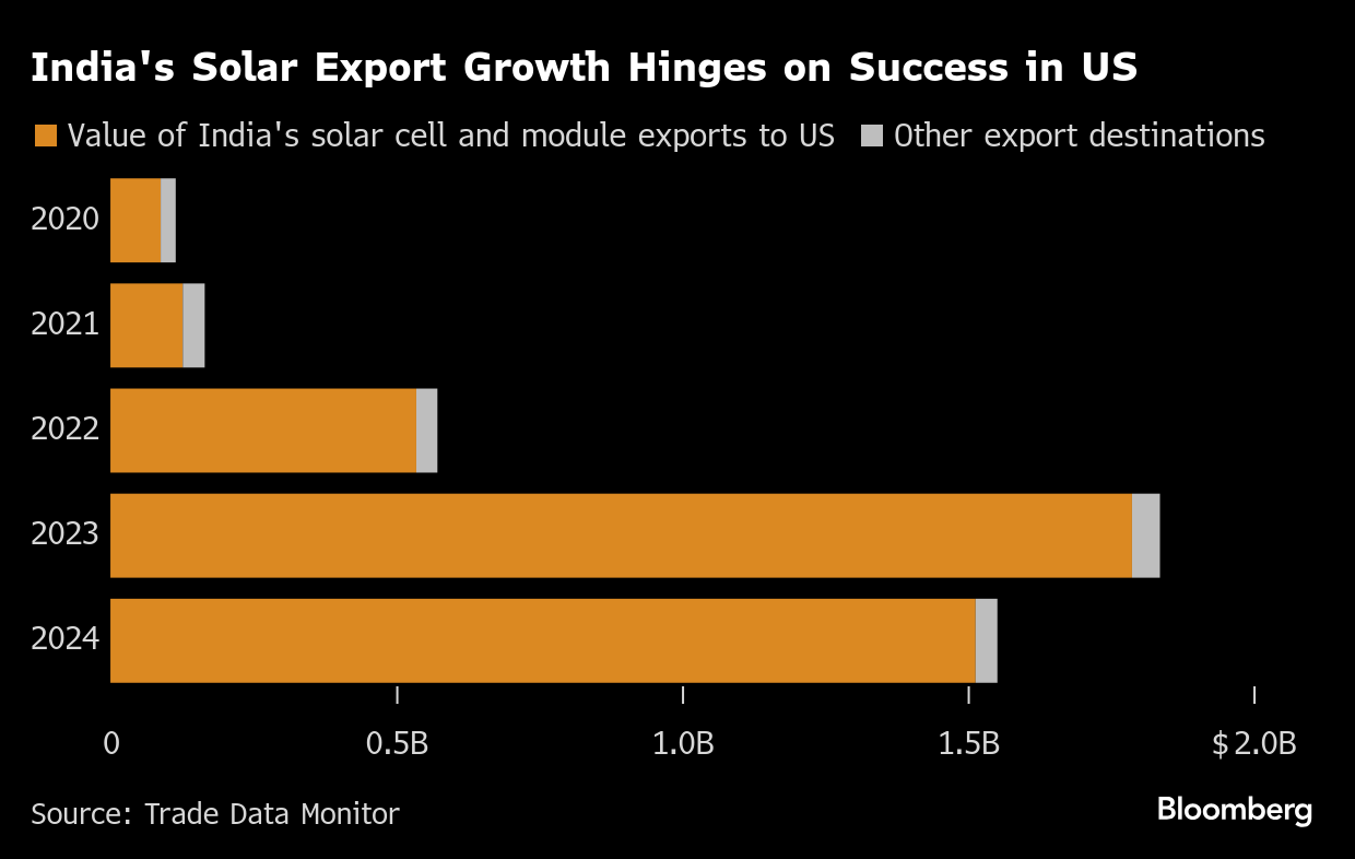 Yet the strategy faces a fresh challenge from President Donald Trump’s trade policies. Trump on Aug. 6 threatened to double tariffs on India to 50% by next week as a result of the nation’s purchases of Russian oil, and when combined with an existing 14% levy on solar imports it will mean manufacturers face more punitive terms than some rivals.