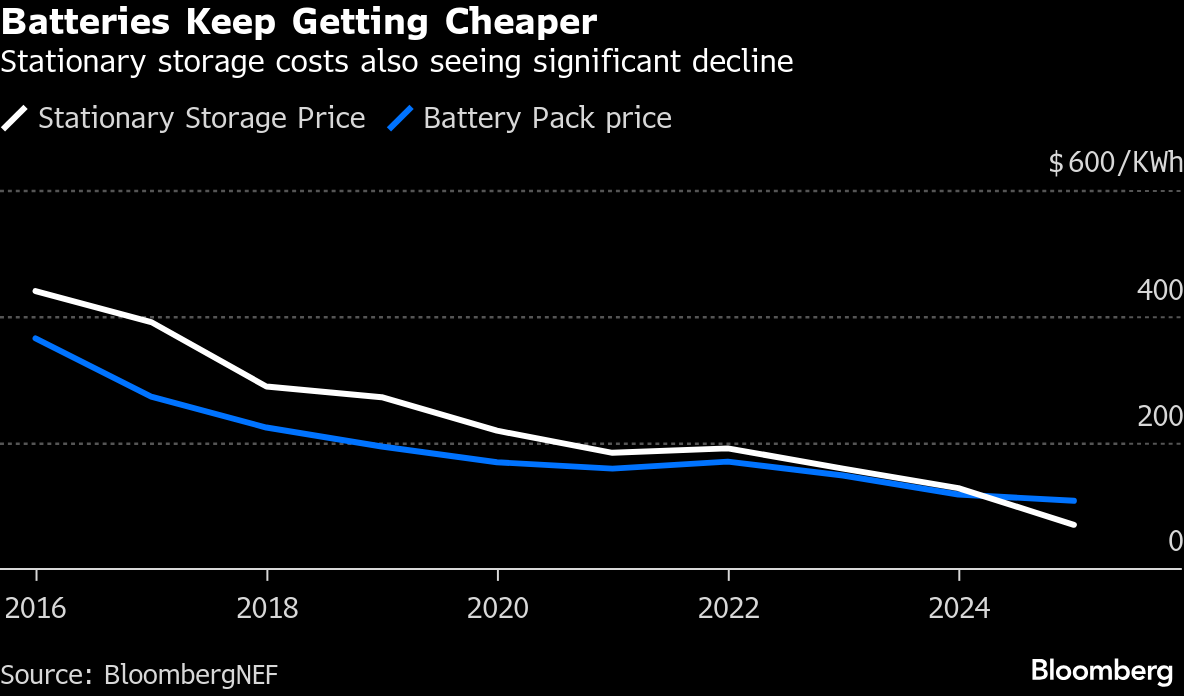 The drop in energy storage costs comes as record levels of solar and wind capacity go online in some countries, straining grids that are forced to curtail their use in the interest of stability. Affordability is also key for high-polluting, developing countries looking to transition away from fossil fuels that otherwise remain attractive due to their cost-competitiveness.