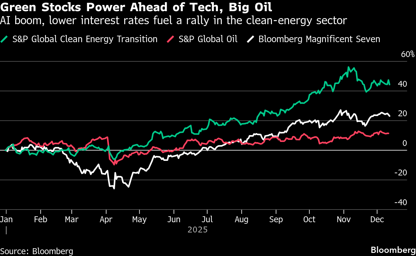 (Bloomberg) -- It was supposed to be a glum year for green stocks as President Donald Trump pushed his Big Oil agenda. Instead, the sector is booming as artificial intelligence powers massive demand for all kinds of energy.
