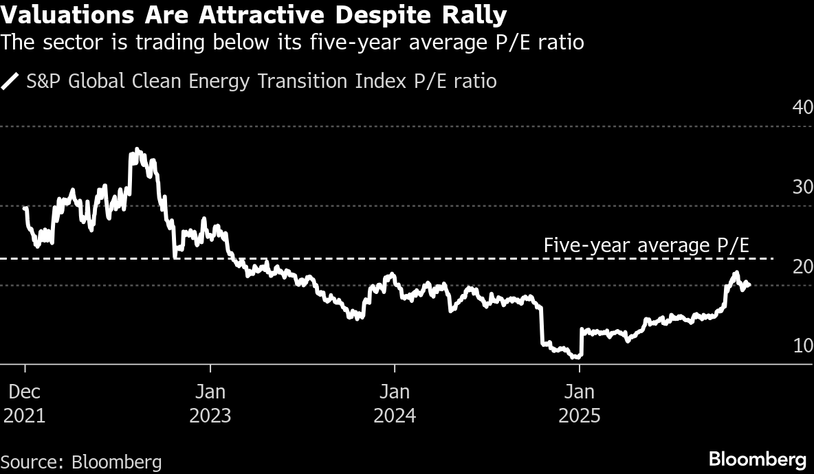 But market participants said the longer-term outlook for the sector remains upbeat as power demand is too high to be met by Big Oil alone. And the rally this year is far from overdone, with the clean-energy stock gauge remaining about 73% below its 2007 peak. Moreover, the index trades at about 20 times forward earnings, below a five-year average of 23.