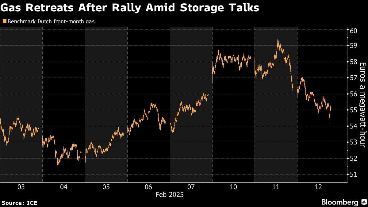 Dutch front-month futures, Europe’s gas benchmark, settled 3.6% lower at €55.66 per megawatt-hour. The spread between gas contracts for this summer and the following winter fell by more than 30%, hitting a three-week low.