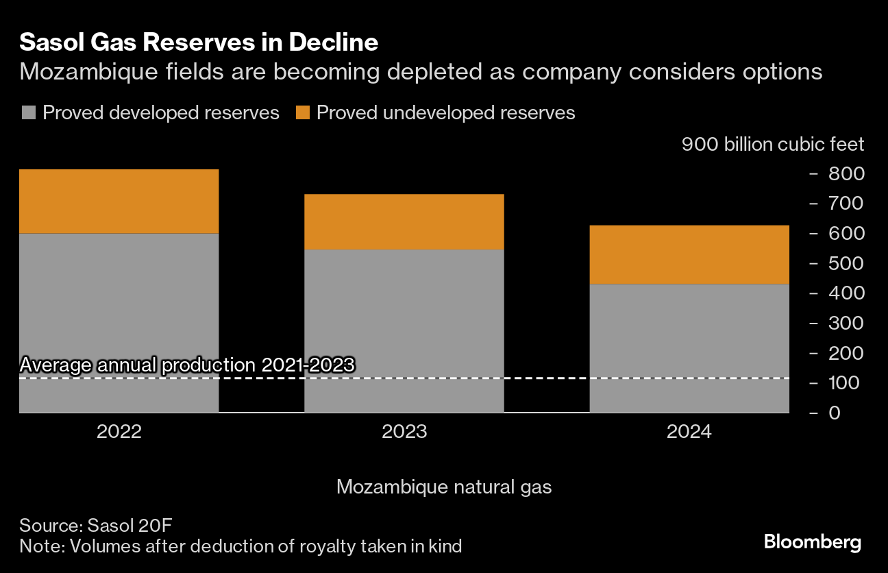 Sasol in 2021 pledged to reduce its emissions 30% by the end of the decade by substituting coal with more gas – delivered by pipeline from operations in neighboring Mozambique. The company has been criticized over the years, in a report and separate policy brief, for lacking adequate access to the replacement fuel that raises its risks.