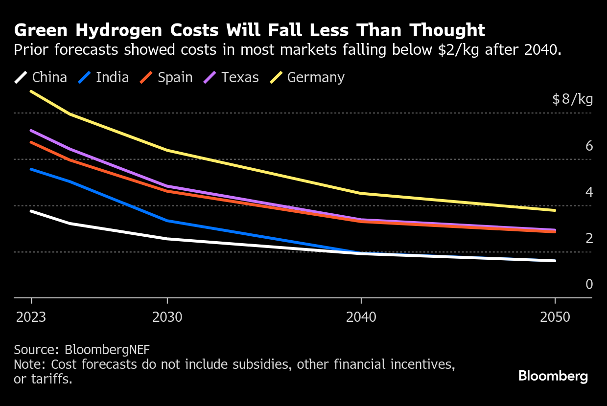 BNEF recently revised its forecast to find the gas will remain stubbornly expensive over the coming decades, costing as much as $5.09 per kilogram. That’s why “we continue to see some of the challenges in the sector,” said Dhanpal Jhaveri, chief executive officer of Eversource Capital.