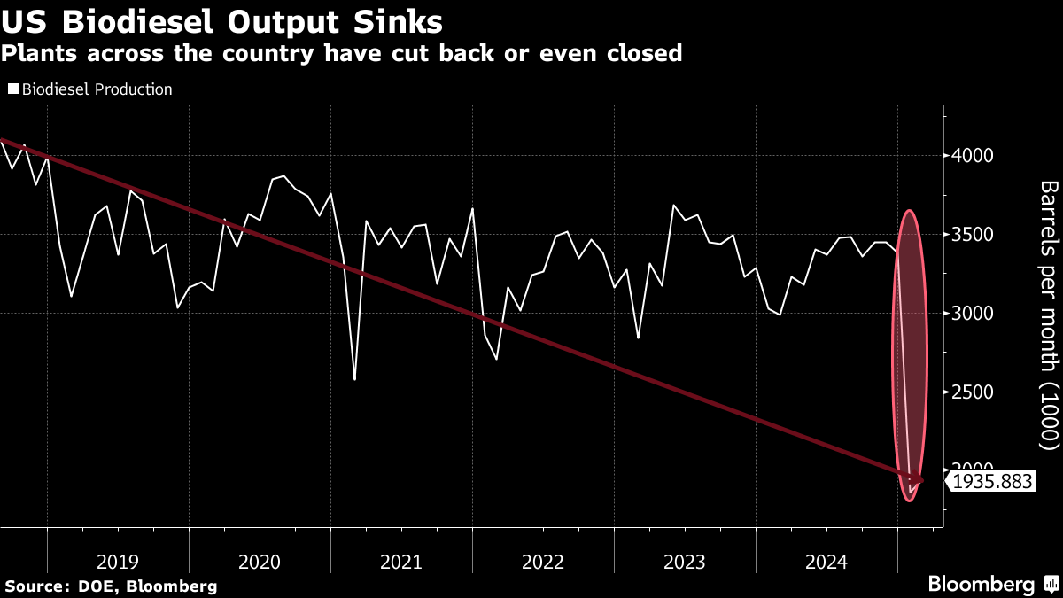 Across the US heartland, biodiesel makers have been thrown into chaos awaiting rules from the Trump administration that will determine their profit outlook. And while fresh blending mandates are set to be released soon, the timeline is still unclear for an even bigger piece of outstanding policy — this year’s replacement of a federal tax credit that had helped to keep the industry afloat.