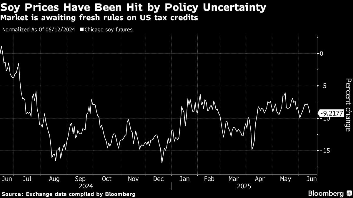 At issue is a Biden-era fuel production credit that’s known as 45Z for its Internal Revenue Service code. The credit rewards companies that produce and transport fuels with lower emissions. Soybean oil, along with growers of the legume, have historically benefitted from similar subsidies, with the commodity used to produce biodiesel. The Biden administration punted on finalizing 45Z, and the industry has been awaiting guidance from President Donald Trump on what comes next.