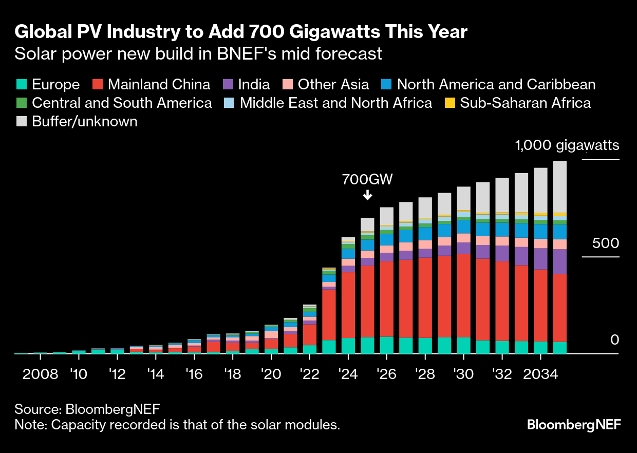 China is set to again lead the world’s buildout of solar this year, adding more than half of the total, according to BloombergNEF. However, the second-biggest economy has struggled to integrate all that added capacity and often had to limit the amount of solar flowing into its grid — an issue it hopes to address by boosting network investments through State Grid Corp. of China and China Southern Power Grid Co.