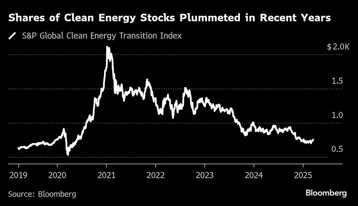 “Stock prices haven’t done well over last few years, but in the real economy clean is booming,” said Aniket Shah, head of sustainability and transition strategy at Jefferies. “When sentiment around something is low, it’s a good time to be a buyer.”