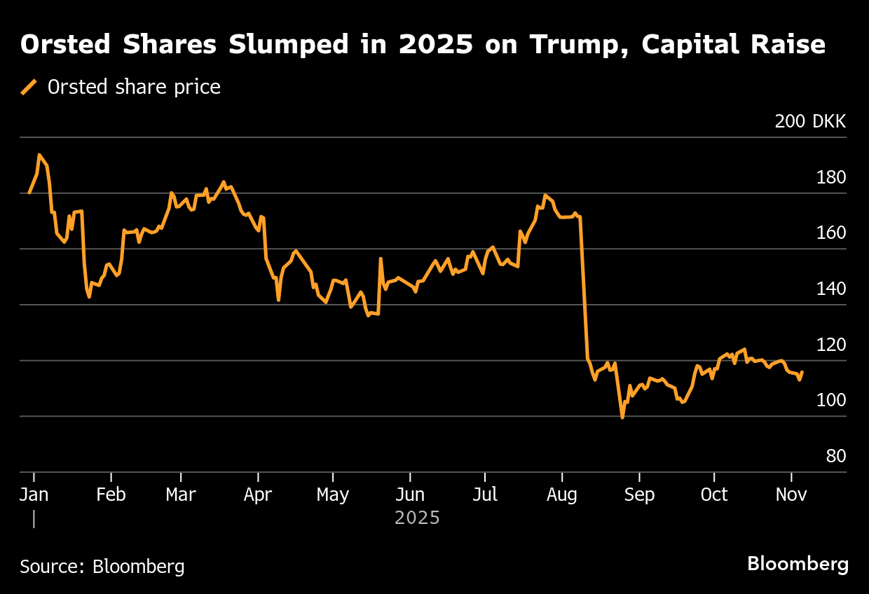 Orsted had already slashed its annual guidance in September, and third-quarter earnings again fell short of expectations. The company also recorded a 1.8 billion Danish kroner ($277 million) net charge linked to US tariffs and the temporary halt of its Revolution Wind project near Rhode Island.