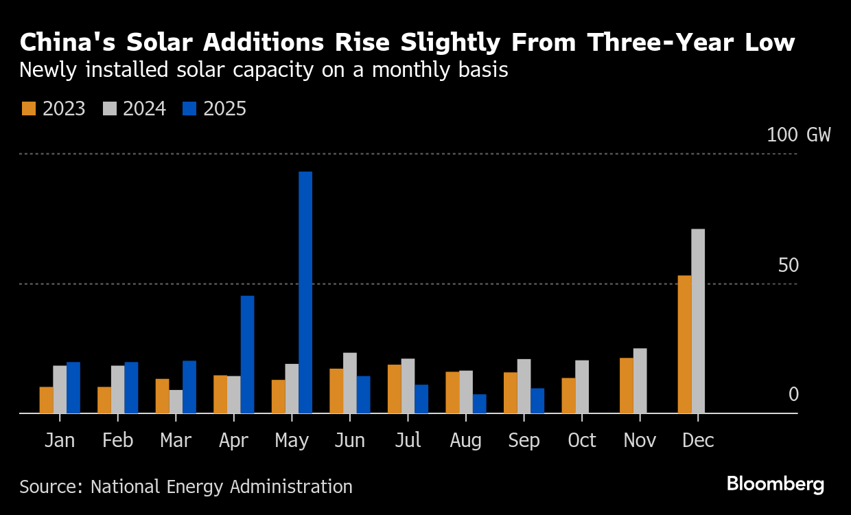 New wind and solar generation have met nearly all of the increase in demand this year, with coal power falling 2.4% and hydropower also declining. The council’s forecast implies fourth-quarter installations will rebound to 99 gigawatts, after falling to just 38 gigawatts in the third quarter, following the adoption of new power market rules.