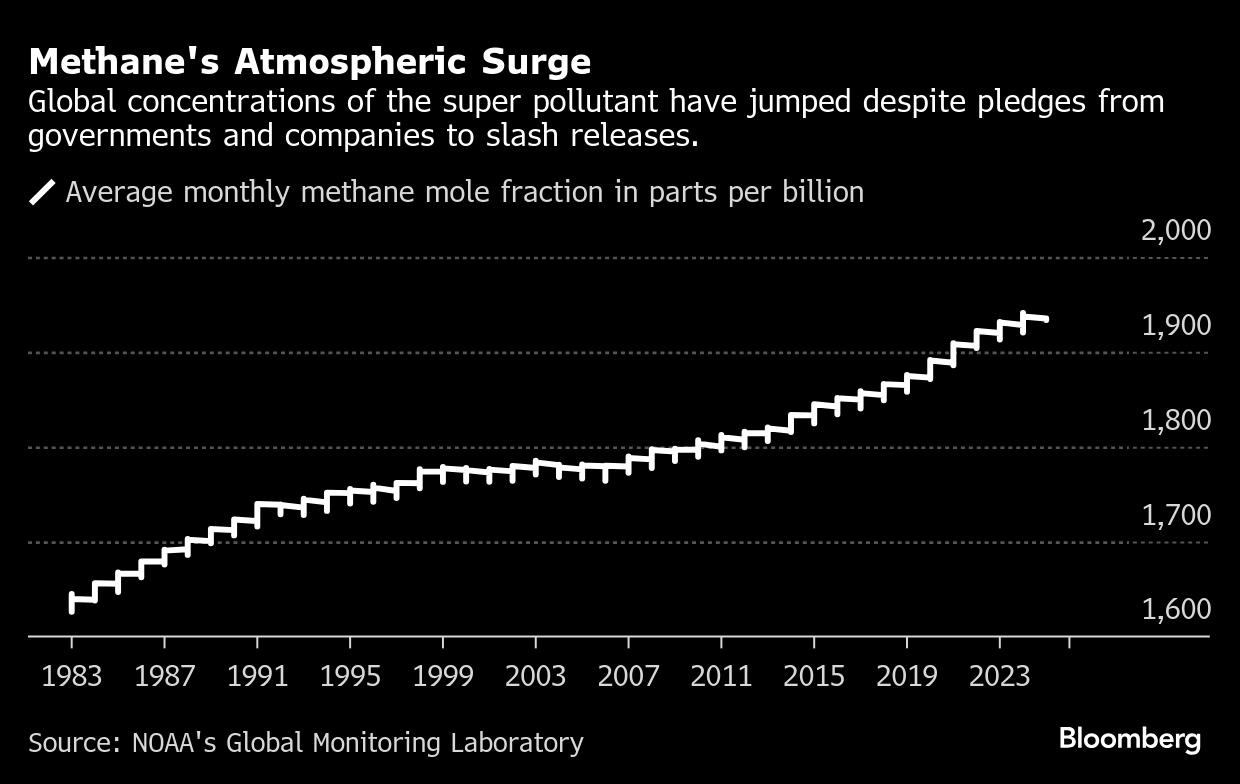 Atmospheric data shows efforts to limit the releases are so far having little impact on the volume of global methane emissions, produced from sectors like oil and gas production, agriculture, landfills and from natural sources such as wetlands.