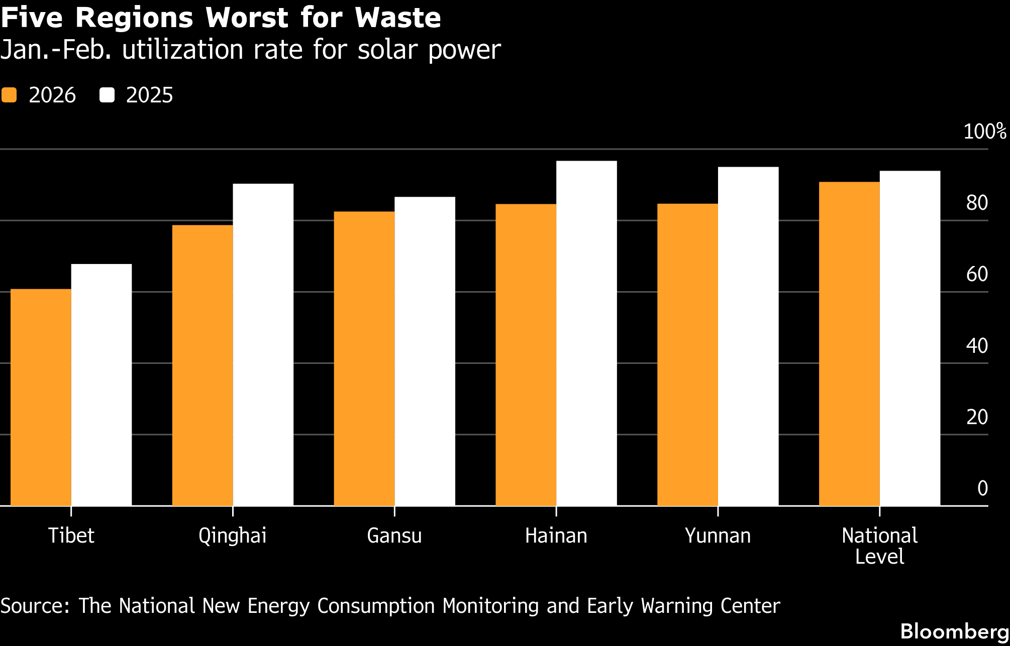 (Bloomberg) -- China is wasting renewable power at an alarming rate, approaching limits that the government had relaxed only two years ago to accelerate solar and wind usage.