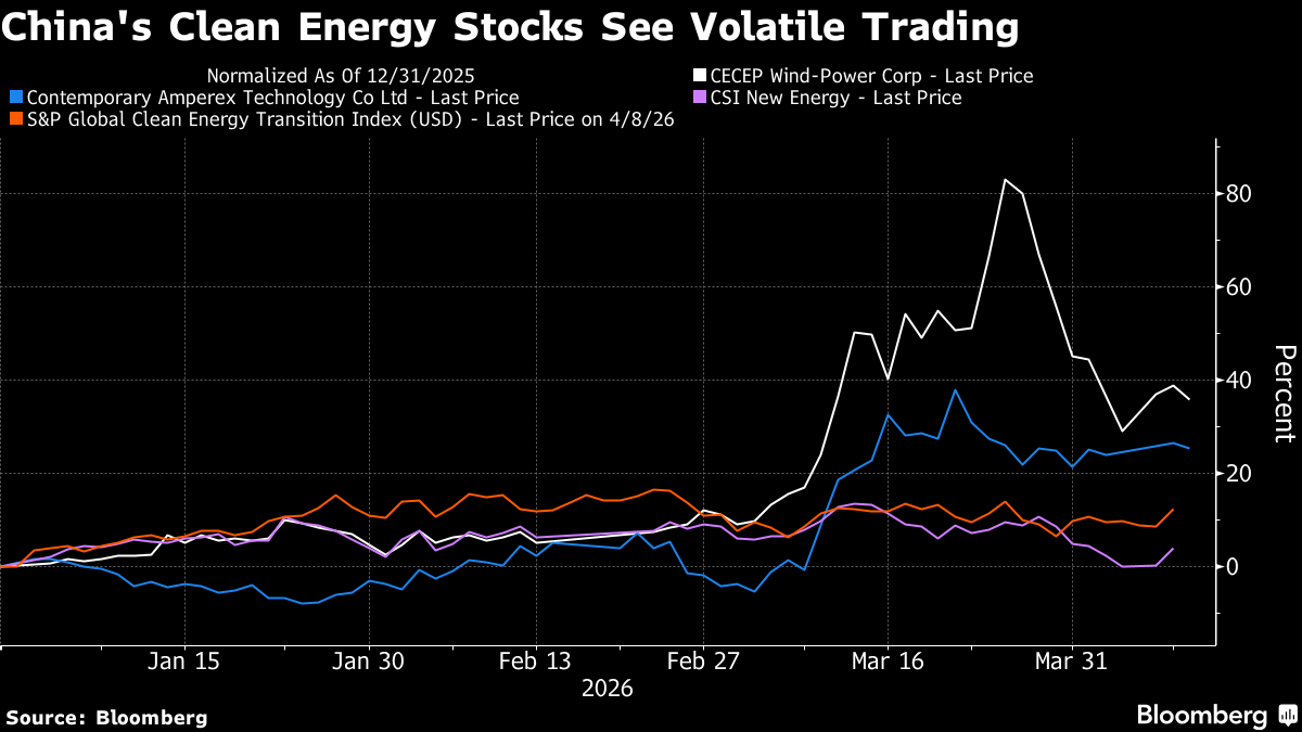 Chinese stocks were among the top performers on the S&P Global Clean Energy Transition Index in the first few weeks of the war, but the gains have since evaporated for most.