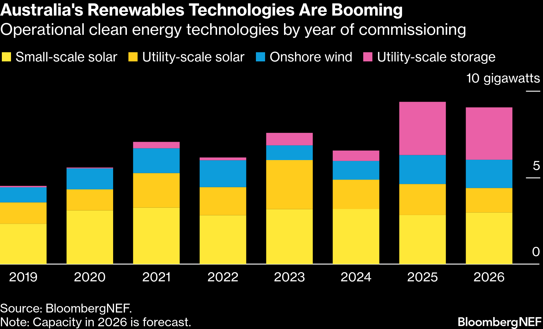 (Bloomberg) -- Australian households — already world leaders in the number of rooftop solar panels per capita — installed as many batteries in the second half of 2025 as they did during the previous five years combined.