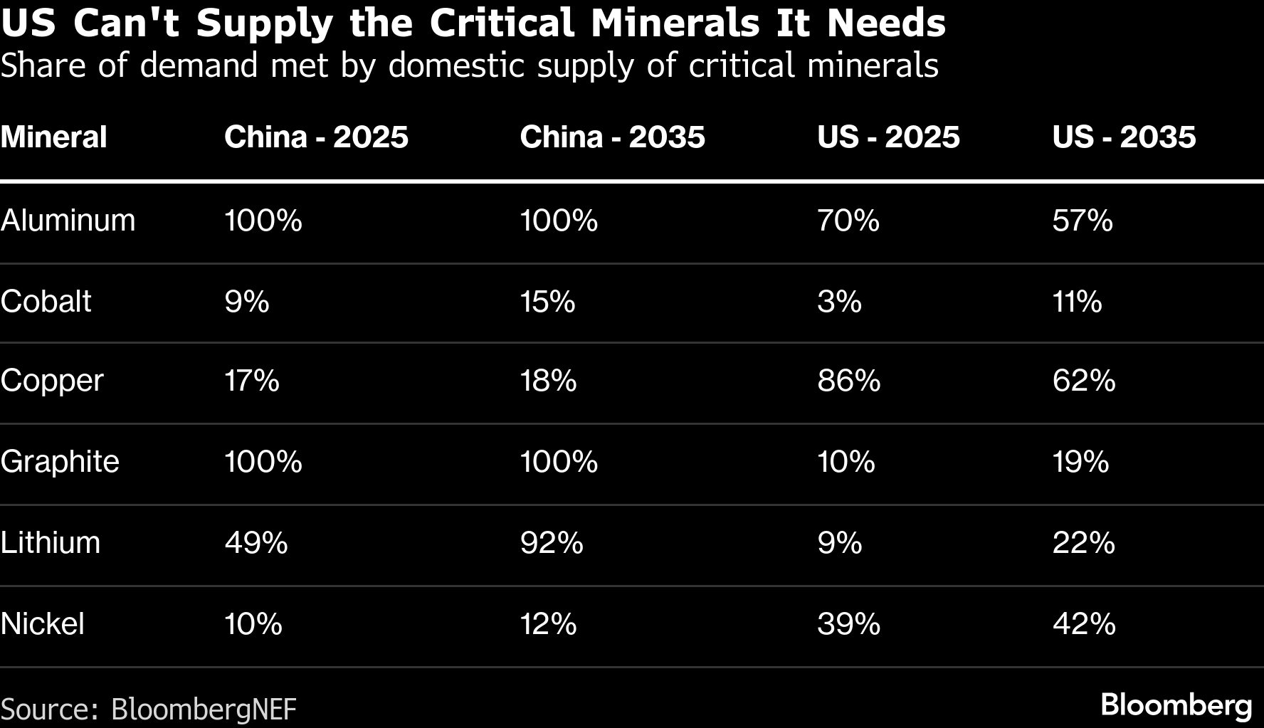 That, combined with China’s dominance in other critical minerals, poses supply chain risks to US companies at a time when geopolitical tensions are on the rise. The Chinese government has used the elements as a weapon in its trade war with the US: Last April, Beijing added seven rare earths and permanent magnets to its export control list.