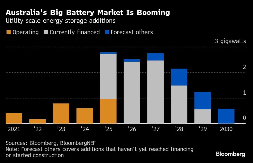 Nearly 70% of Australia’s coal capacity will retire over the next decade, according to BloombergNEF, increasing demand for alternatives like batteries.