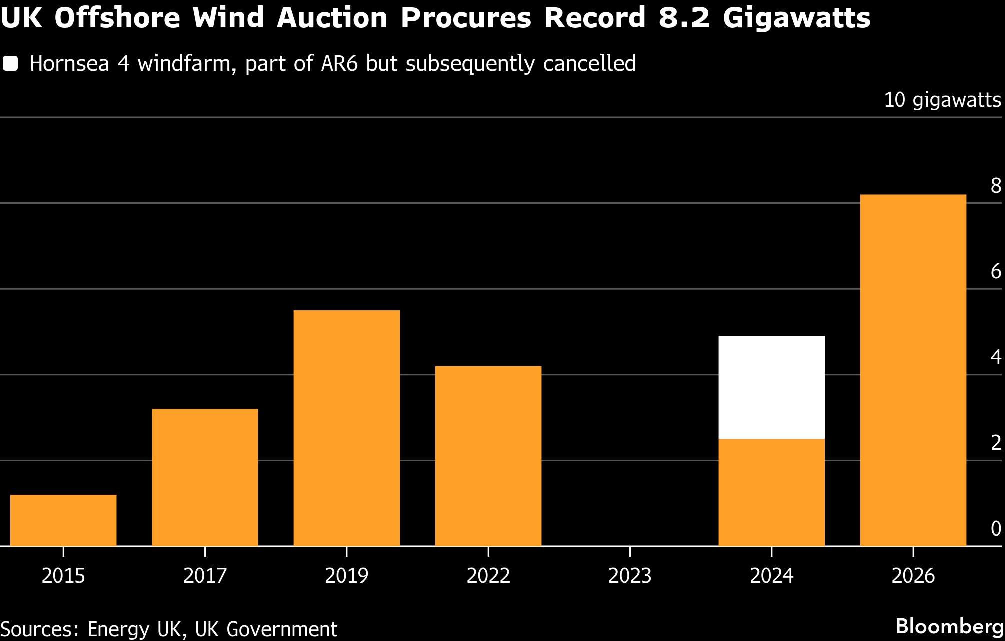 (Bloomberg) -- Britain stepped up support for offshore wind in the latest subsidy auction, showing the government is still determined to meet its ambitious 2030 clean-power goal even as costs rise.