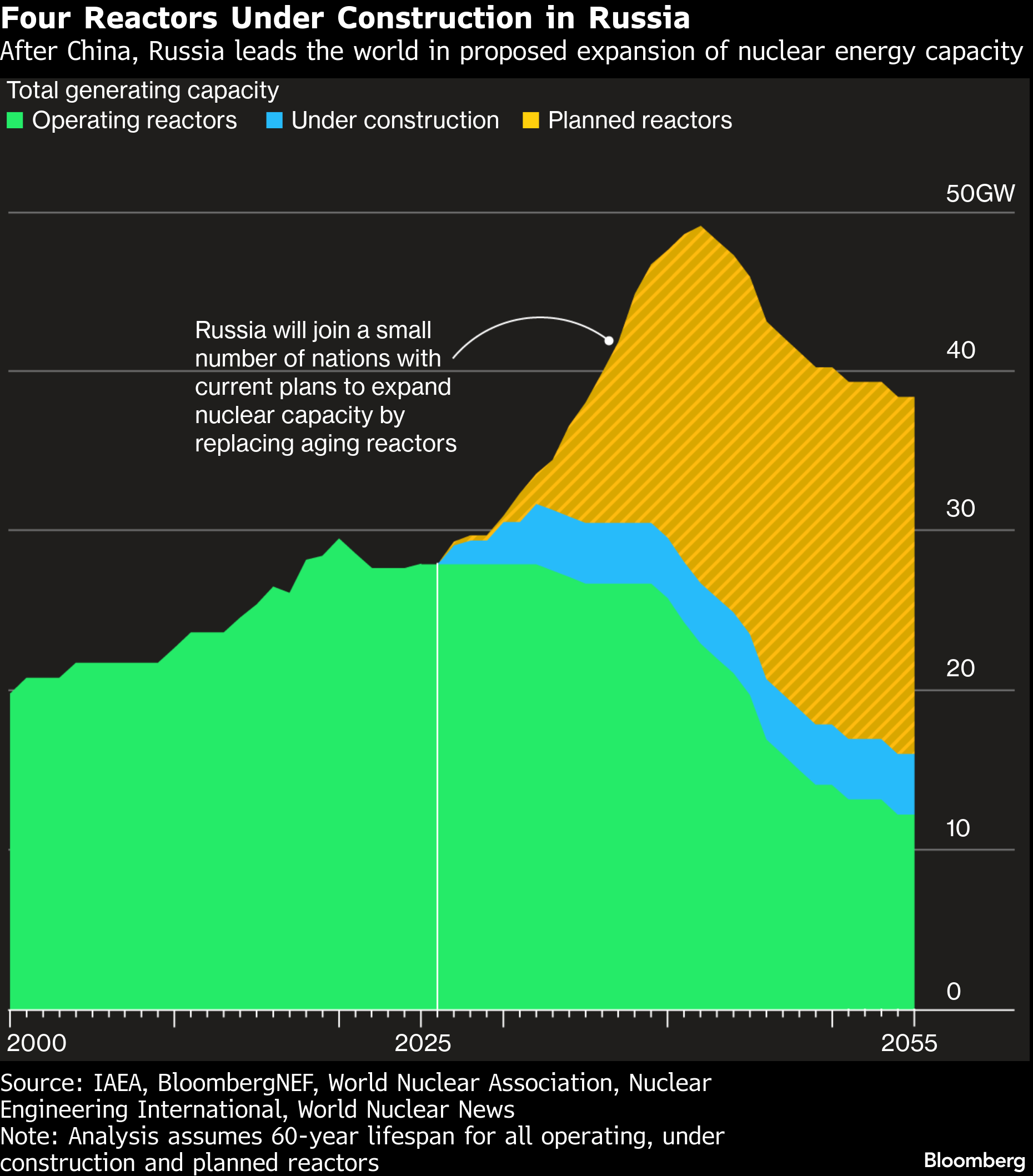 Russia, despite the travails of its atomic program after the Chernobyl disaster and the collapse of the Soviet Union, is replacing aging units. Its war in Ukraine has choked state-run Rosatom Corp.’s funds to expand at home and abroad, but the company has lofty goals to as much as double generation capacity over the next few decades.