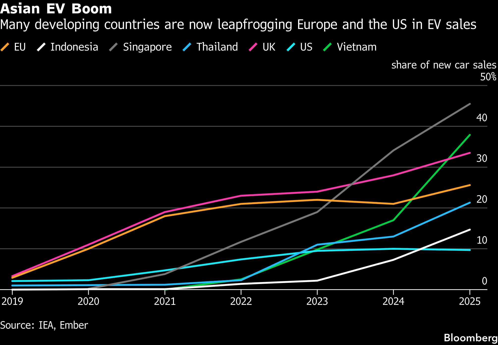 Ever is just one dealership, but signs of a shift are playing out across the world. In Southeast Asia, buyers are flocking to Chinese EV giant BYD Co.’s stores, while electric rickshaws are selling out in Pakistan. A shortage of cooking oil in India is driving a run on electric stoves. From Germany to Nigeria, interest in rooftop solar is surging. And in the UK, some homeowners are taking the plunge on expensive heat pumps.