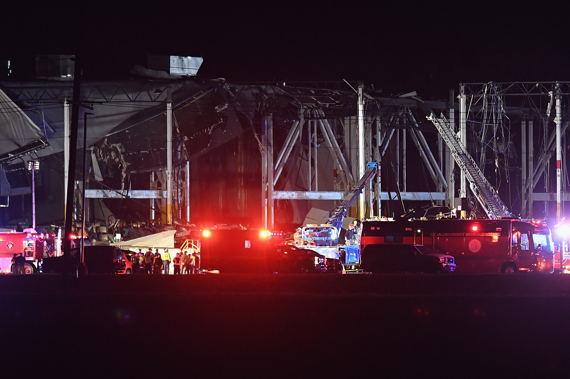 In Illinois, part of the roof and wall collapsed at a large Amazon fulfillment site near Edwardsville, northeast of St. Louis, causing “confirmed fatalities,†according to the local police department.