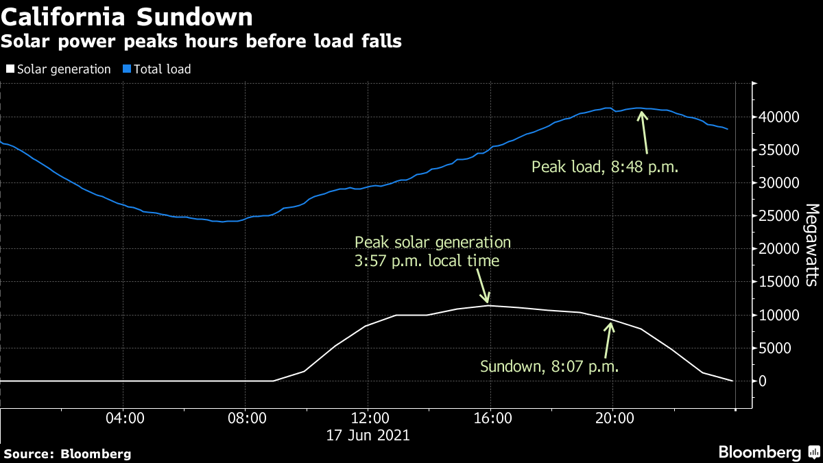 The state estimates that will boost capacity by about 2,000 megawatts -- roughly the output of two nuclear reactors -- by August, and some are already running. By contrast, officials forecast demand Friday will peak at more than 41,000 megawatts. What’s more, demand load typically peaks hours after solar output reaches its maximum.