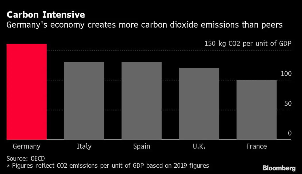 Getting to net zero by 2045 will be a huge challenge for Europe’s biggest economy, a manufacturing powerhouse that is home to companies like Volkswagen AG and Bayer AG and emits proportionally more carbon than its peers on the continent.