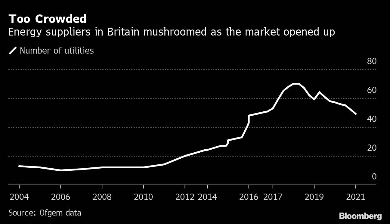 With no need for access to homes, a team of engineers or a company headquarters, the ease of entry explains why the number of suppliers in Britain ballooned to a peak of more than 70 in 2018. It also shows why the most open energy market of any major European economy is now convulsing.