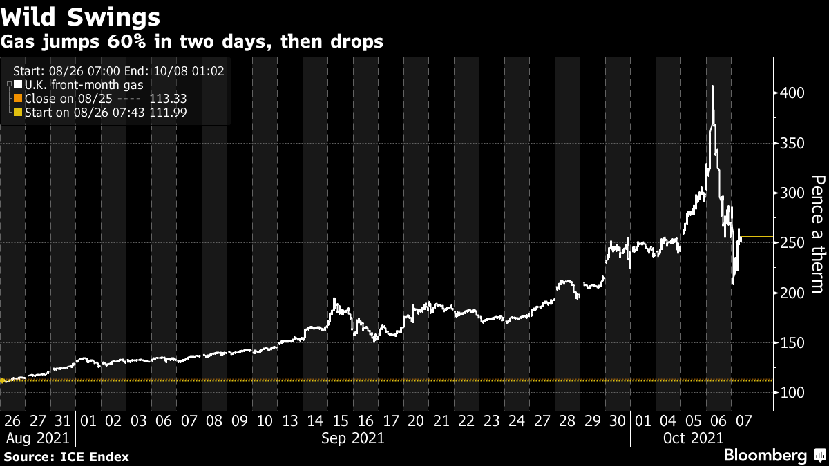 Ten companies have already failed since the start of August and the exodus isn’t over yet, according to U.K. Business Secretary Kwasi Kwarteng. A blistering rally caused by concerns about the availability of winter supplies has given way to huge price swings that saw Dutch and U.K. gas futures surge 60% in just two days before falling. Britain’s grid operator has tried to calm the market saying its modeling shows the nation will be able to secure enough gas.
