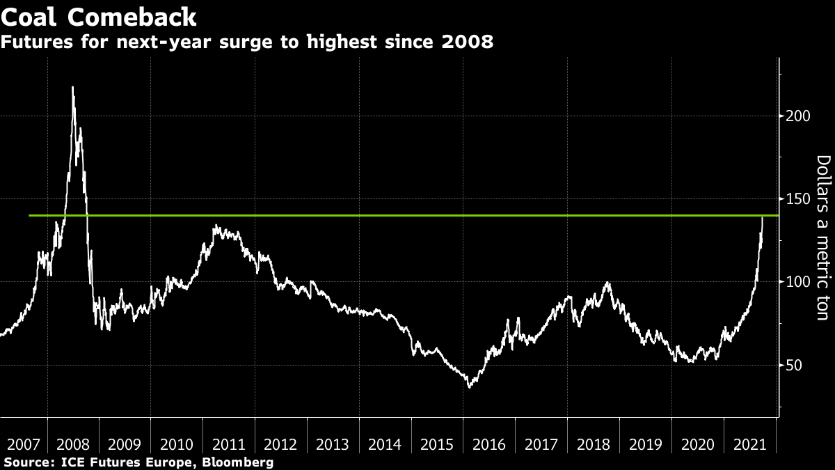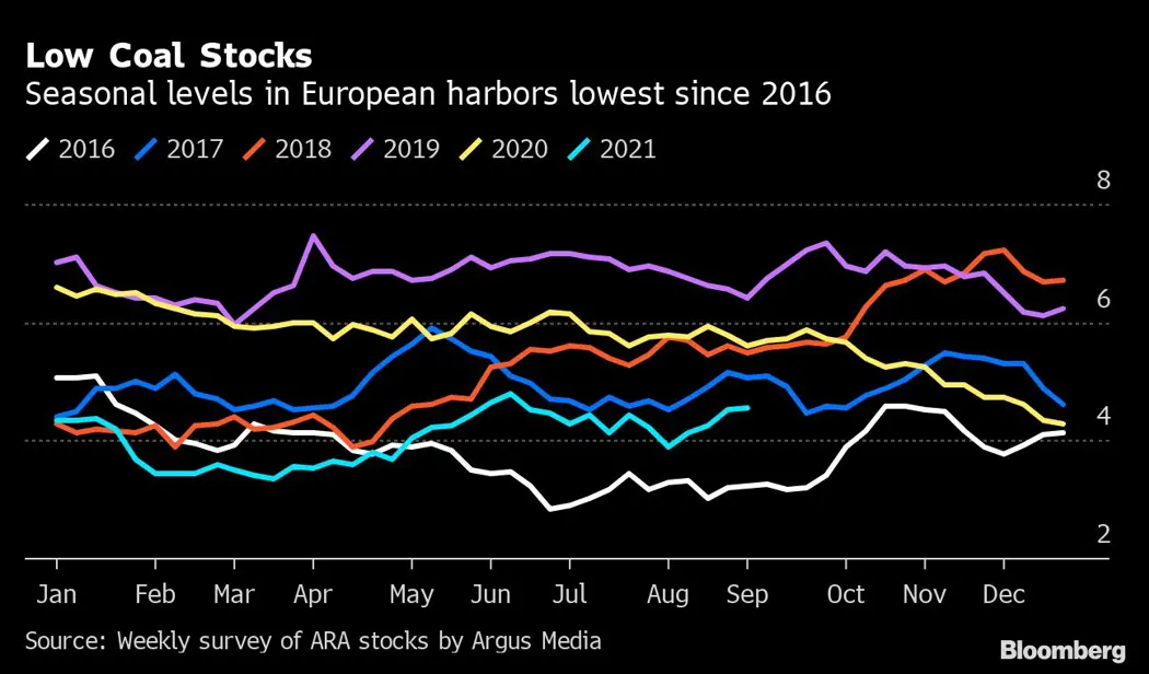 Energy prices are soaring just as Europe is trying to push for a more ambitious climate deal when world leaders meet in Scotland later this year. Coal’s comeback is likely to make those talks difficult for politicians from the U.K. to Spain and Italy, which are already dealing with the fear of voter backlash from rising energy bills.