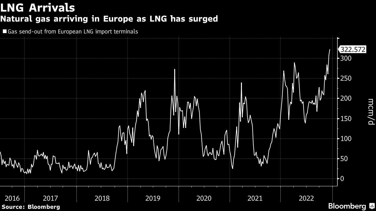 Still, Europe is importing record volumes of liquefied natural gas as lower pipeline flows from Russia exacerbate the crisis. Traders are also closely watching activity in China, which is loosening Covid-related restrictions that have crimped energy demand. A freeze in Asia could increase international competition for LNG.